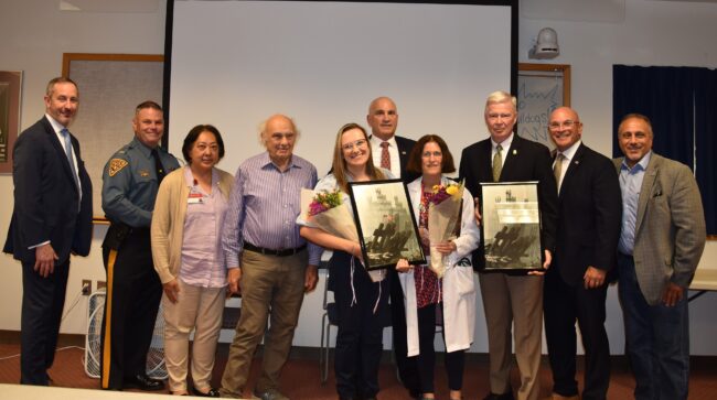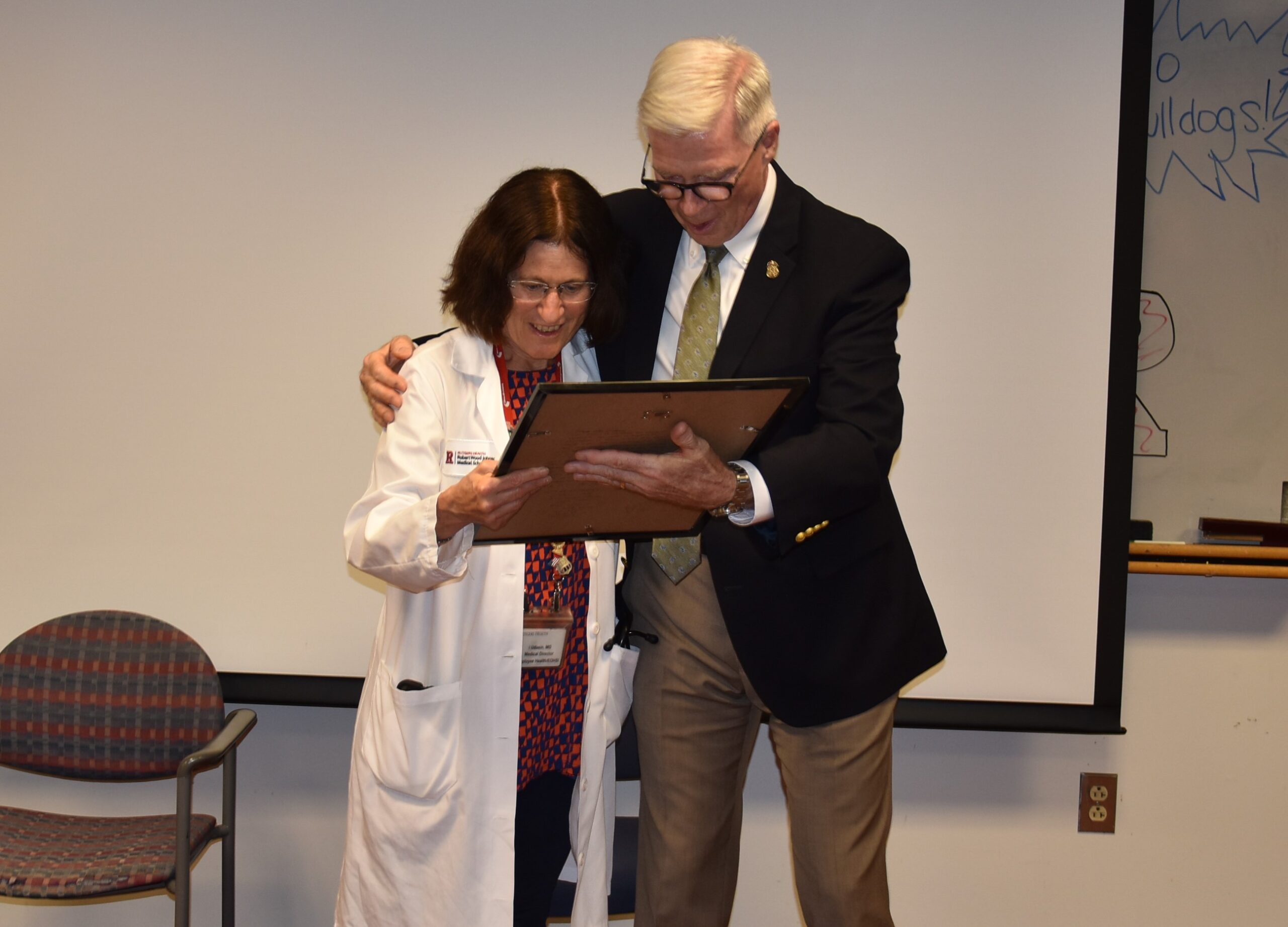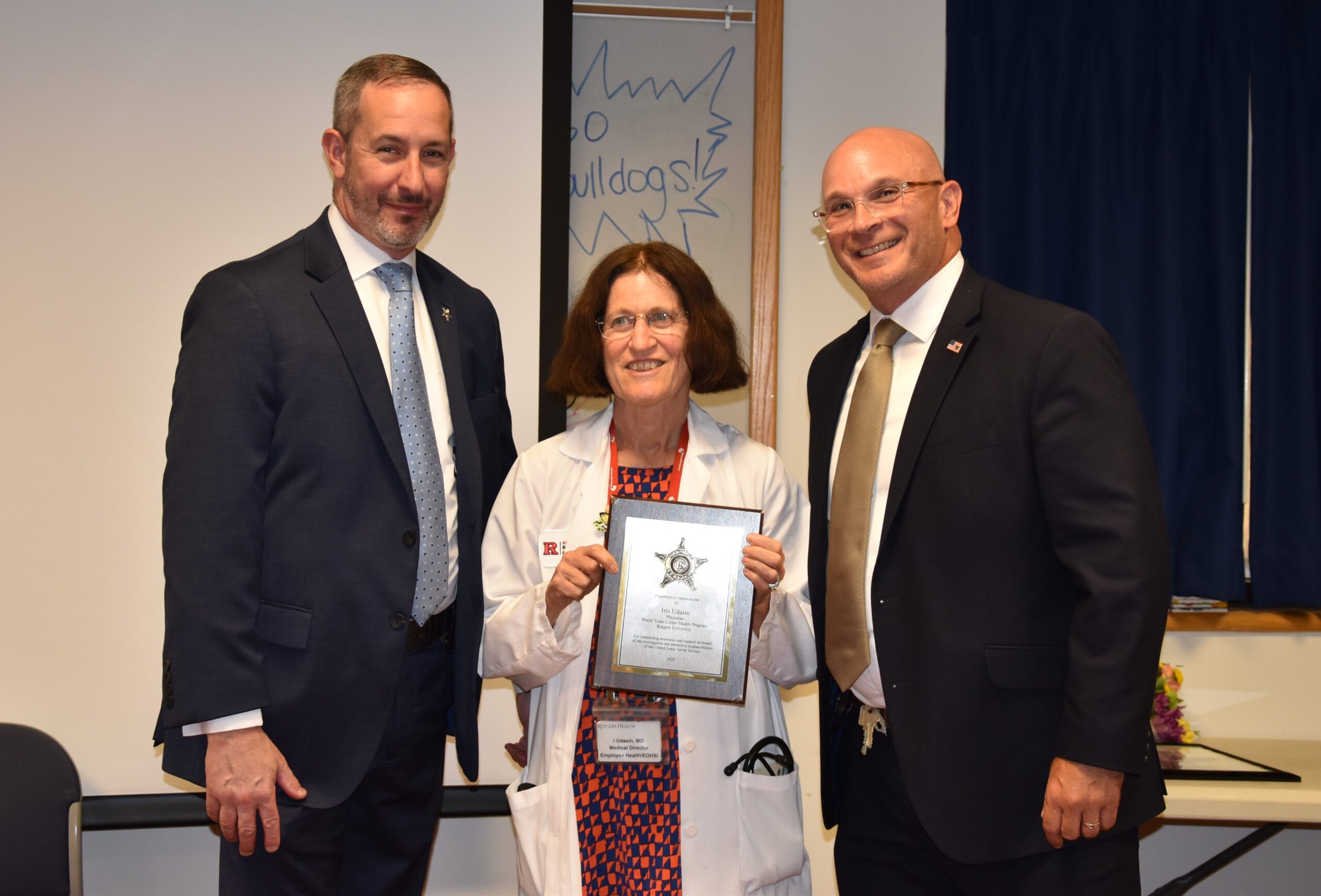 “I want to express my deepest gratitude for your extraordinary dedication to those whose lives an health were forever changed on 9/11”, said Dennis Letts, retired USSS Agent and Dr. Udasin’s patient. “It is my honor to present you with this iconic photo of the WTC ruins”, continued Letts, “captured by my good friend, NYPD Detective Dave Fitzpatrick.